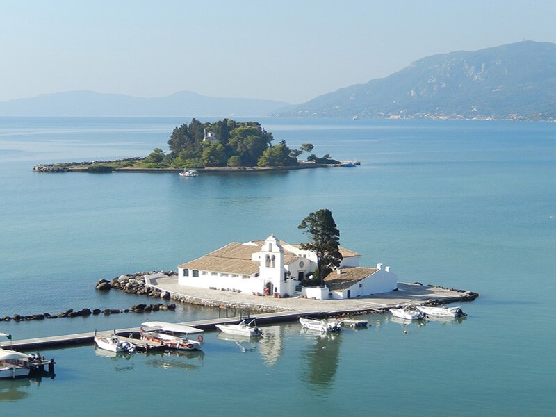 Monasterio Vlachérna y la Isla de Pontikonissi (Isla de Ratones)
